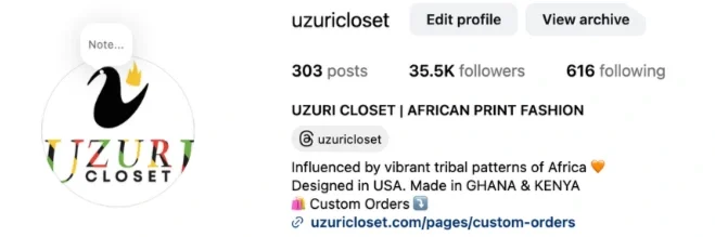 Uzuri Closet was built from the ground up as a women’s African print fashion brand, beginning as an online store and expanding into a physical retail location.